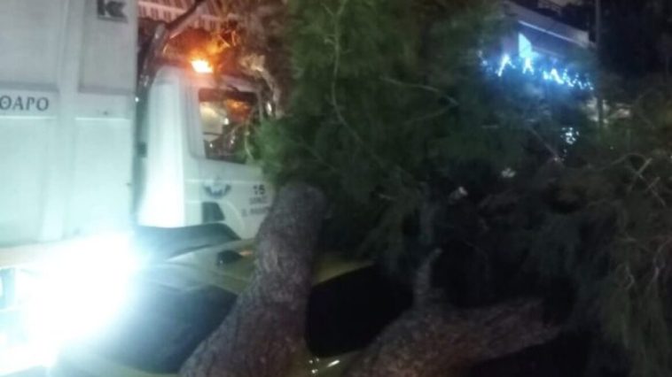 Μεγάλο πεύκο έπεσε σε απορριμματοφόρο και αυτοκίνητο στο Παλαιό Φάληρο, δείτε φωτογραφίες