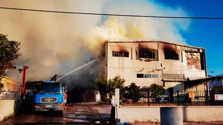 «Η φωτιά έχει μπει σε εργοστάσια, έχει πολύ αέρα. Καίγονται τουλάχιστον δύο εγκαταστάσεις. Ένα εργοστάσιο ξυλείας, χαρτικών και ένα με πλαστικά. Η φωτιά ξεκίνησε μέσα από το ρέμα. Οι δυνάμεις της πυροσβεστικής είναι μεγάλες και βοηθούν και οι όμοροι δήμοι», δήλωσε νωρίτερα στο protothema.gr o κ. Βρεττός. Η φωτιά άφησε, επίσης, πίσω της καμμένα αυτοκίνητα σε γκαράζ και συνεργεία στην περιοχή.