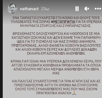 Το δικό του ευχαριστώ «λέει» στον κόσμο μέσω του Instagram ο που δημοσιεύει ένα κείμενο εξηγώντας πως όλοι οι συντελεστές είναι ακόμα σε κατάσταση σοκ.