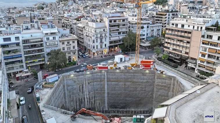 Η εκσκαφή του Ομίλου ΑΒΑΞ έχει φτάσει τα 28 μέτρα, ενώ το τελικό βάθος εκσκαφής θα φτάσει τα 35 μέτρα. Το εμβαδόν του σκάμματος ξεπερνά τα 2.000 τετραγωνικά μέτρα, ενώ το εμβαδόν του εργοταξίου τα τέσσερα στρέμματα. Δηλαδή, ο όγκος της εκσκαφής ισοδυναμεί με οκτώ 10όροφες πολυκατοικίες!