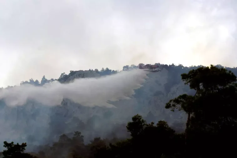 Στο σημείο επιχειρούν δύο πυροσβέστες με ένα όχημα, εθελοντές και από αέρος δύο αεροσκάφη και ένα ελικόπτερο.