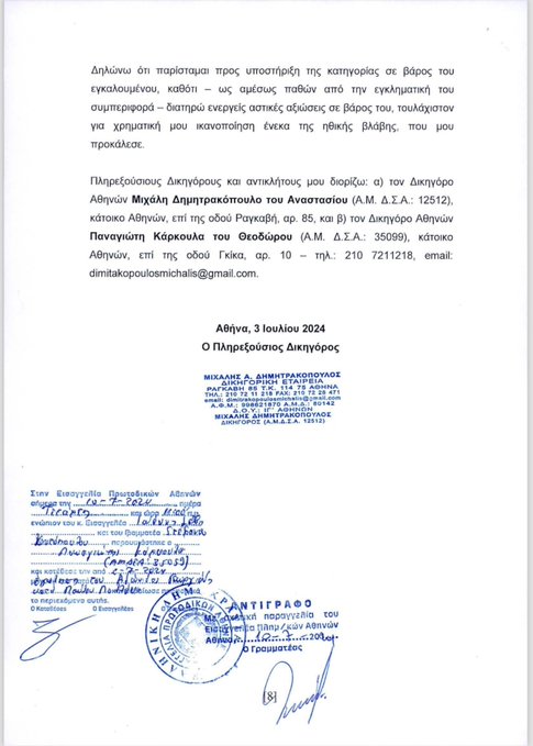 - Συγκεκριμένα, σε ανάρτηση του, ο κ. Γεωργιάδης αναφέρει: «Οπως είχα προαναγγείλει σήμερα κατέθεσα τη μήνυση κατά του @pavpol2222 και ακολουθεί και η Αγωγή. Εδειξα υπερβολική ανοχή στις συκοφαντίες και στη συνεχόμενη λάσπη από τον συγκεκριμένο. Θα έρθει λοιπόν στο Δικαστήριο και θα λογοδοτήσει και για τις εναντίον μου και για τις εναντίον των εισαγγελέων που με αρχειοθέτησαν κατηγορίες. Ελπίζω να μη ζητήσει να κρυφτεί πίσω από τη βουλευτική του ασυλία. Νέα μήνυση και αγωγή θα καταθέτω πλέον κάθε φορά που κάποιος αμφισβητεί την ηθική μου συγκρότηση».