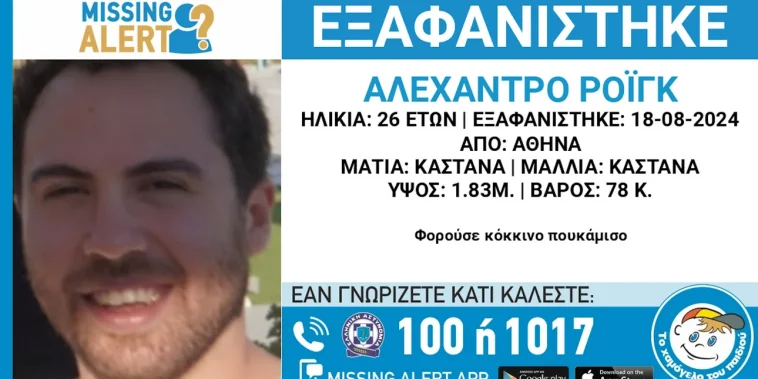 Συναγερμός έχει σημάνει στην ΕΛ.ΑΣ για την εξαφάνιση το πρωί της Κυριακής (18/8) του 26χρονου Αλεχάντρο Ρόιγκ από το κέντρο της Αθήνας.
