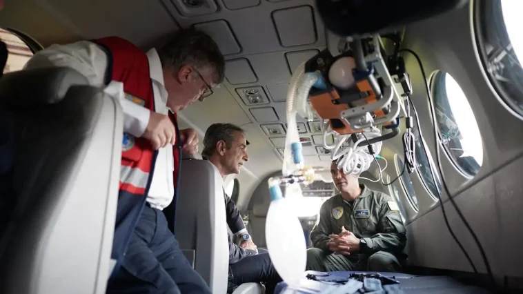 Επιστρέφοντας από τη Ρώμη, όπου νωρίτερα συμπροήδρευσε στο 2ο Ανώτατο Συμβούλιο Συνεργασίας Ελλάδας – Ιταλίας, ο Κυριάκος Μητσοτάκης ενημερώθηκε στην Αεροπορική Βάση Ελευσίνας, για τις δυνατότητες του νέου αποκτήματος του ΕΚΑΒ, του Beechcraft King Air 360C.