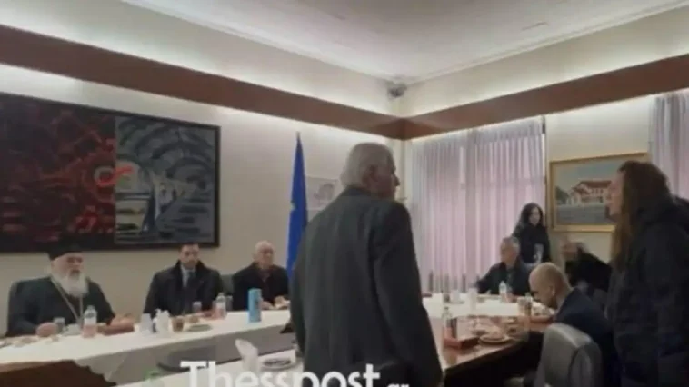 Μετά την τέλεση του μνημόσυνου, η Κανέλλα Ανδρεάδου, μητέρα της 22χρονης Αφροδίτης Τσιώμα ανέβηκε στην αίθουσα συνεδριάσεων όπου βρισκόταν ο Κώστας Κυρανάκης και ο μητροπολίτης Βαρνάβας.