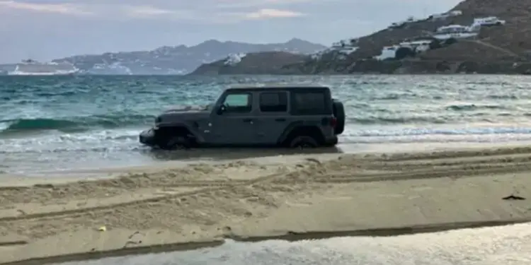 Ο οδηγός προφανώς ήθελε να δοκιμάσει τις off road δυνατότητές του, ίσως είχε δει πολλές ταινίες και πίστευε πως θα μπορεί να οδηγήσει μέσα στη θάλασσα και την πάτησε. Ακινητοποιήθηκε. Και αναφερόμαστε σε ένα Jeep Wrangler Rubicon του 2023, αξίας 80.000 ευρώ.