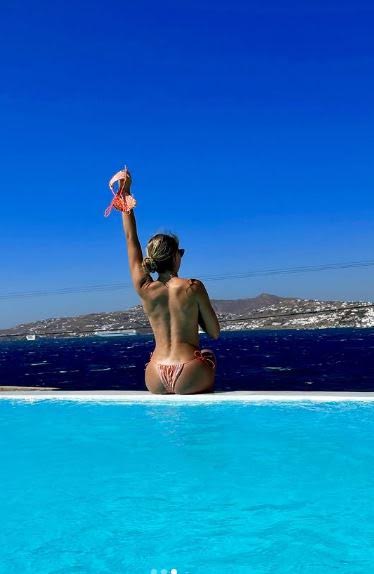 Είναι η Ματίνα Ζάρα – πείτε μου ένα τραγούδι της… όχι πείτε μου – που πήγε στη Μύκονο, χαλάρωσε και εκεί που ατένιζε το απέραντο γαλάζιο, είπε να πετάξει το πάνω μαγιό της για να πάρους τα στήθη της αέρα.