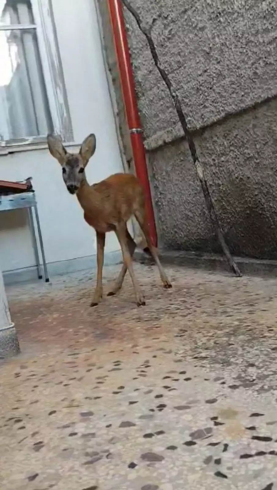 Το πανέμορφο ζαρκάδι φαίνεται πως χωρίστηκε από την οικογένειά του και κατά λάθος (ίσως να κυνηγήθηκε από σκυλιά) βρέθηκε στη δυτική πλευρά της πόλης της Νάουσας.