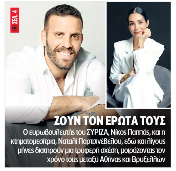 Σύμφωνα με δημοσίευμα της real news ο ευρωβουλευτής του ΣΥΡΙΖΑ και πρώην μπασκετμπολίστας, Νίκος Παππάς και η εντυπωσιακή κτηματομεσίτρια, Ναταλί Παρισινέβελου, φέροντας να διατηρούν σχέση εδώ και λίγους μήνες.