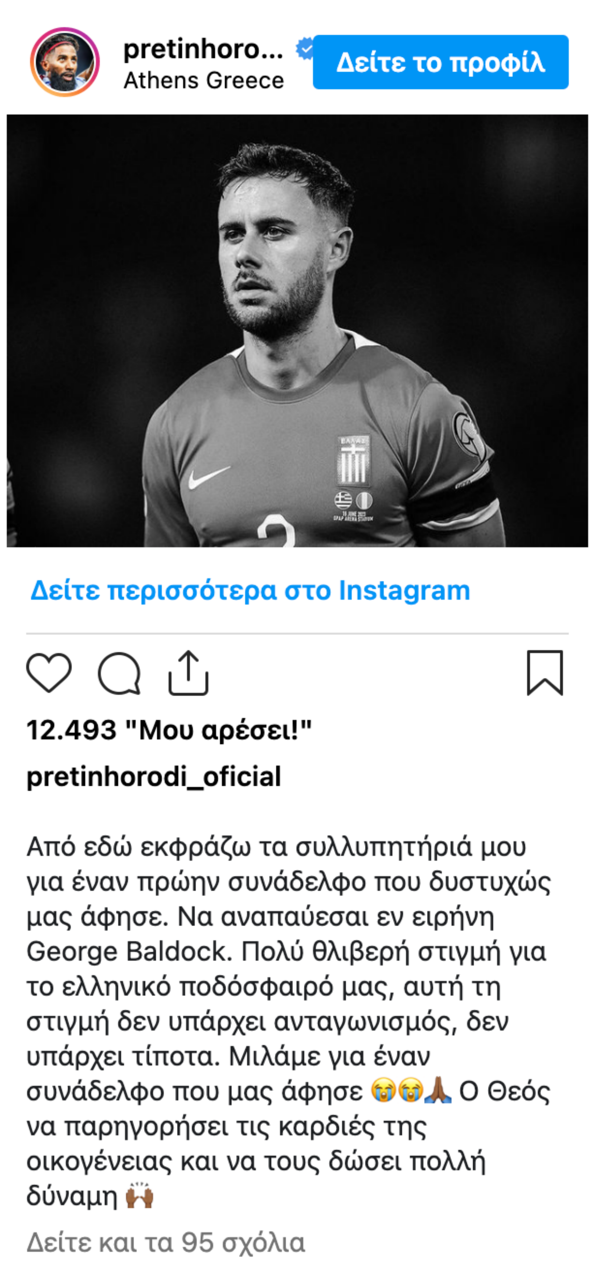 • Τηn θλίψη τους για την απώλεια του Τζορτζ Μπάλντοκ, εξέφρασαν μέσω των social media οι Τσικίνιο και Ροντινέι, με τον δεύτερο να συγκινεί με το μήνυμα του στα ελληνικά.