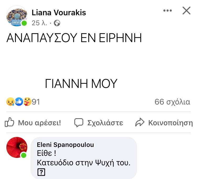 - Τη δυσάρεστη είδηση του θανάτου έκανε γνωστή η αδελφή του Λιάνα με μία ανάρτησή της στο Facebook. «Αναπαύσου εν ειρήνη Γιάννη μου», έγραψε χαρακτηριστικά.
