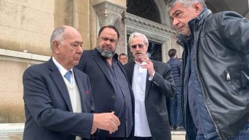 Βαγγέλης Μαρινάκης και Αλέξης Κούγιας στο προαύλιο του ναού της Πάτρας.