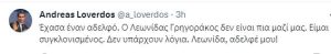 - Διετέλεσε Ε’ Αντιπρόεδρος Βουλής των Ελλήνων, αναπληρωτής υπουργός Εσωτερικών και αναπληρωτής υπουργός Υγείας Τη θλιβερή είδηση έκανε γνωστή ο Ανδρέας Λοβέρδος. «Έχασα έναν αδελφό. Ο Λεωνίδας Γρηγοράκος δεν είναι πια μαζί μας. Είμαι συγκλονισμένος. Δεν υπάρχουν λόγια. Λεωνίδα, αδελφέ μου», ανήρτησε ο Ανδρέας Λοβέρδος.