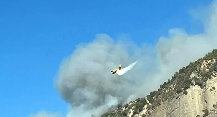 Ρίψεις νερού πραγματοποιούν από αέρος, 7 αεροσκάφη και 3 ελικόπτερα.