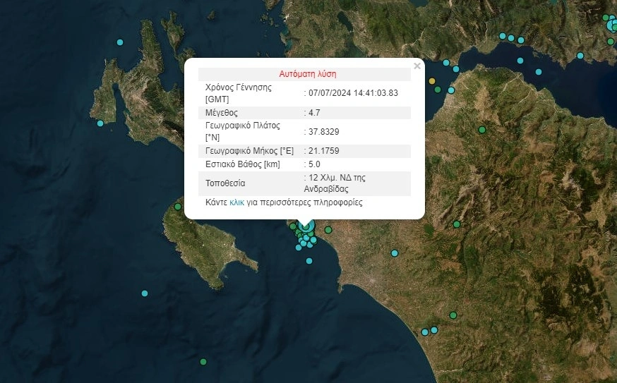 Ένας νέος ισχυρός σεισμός μεγέθους 4,7 Ρίχτερ ταρακούνησε την Ανδραβίδα την Κυριακή (6/7). Σύμφωνα με το Γεωδυναμικό Ινστιτούτο, το επίκεντρο της σεισμικής δόνησης ήταν 12 χιλιόμετρα Νοτιοδυτικά της Ανδραβίδας και είχε εστιακό βάθος πέντε χιλιομέτρων. Υπενθυμίζεται ότι σημειώθηκε σεισμός 4,9 Ρίχτερ «ταρακουνώντας» την περιοχή, ενώ ακολούθησε διψήφιος αριθμός μετασεισμών.