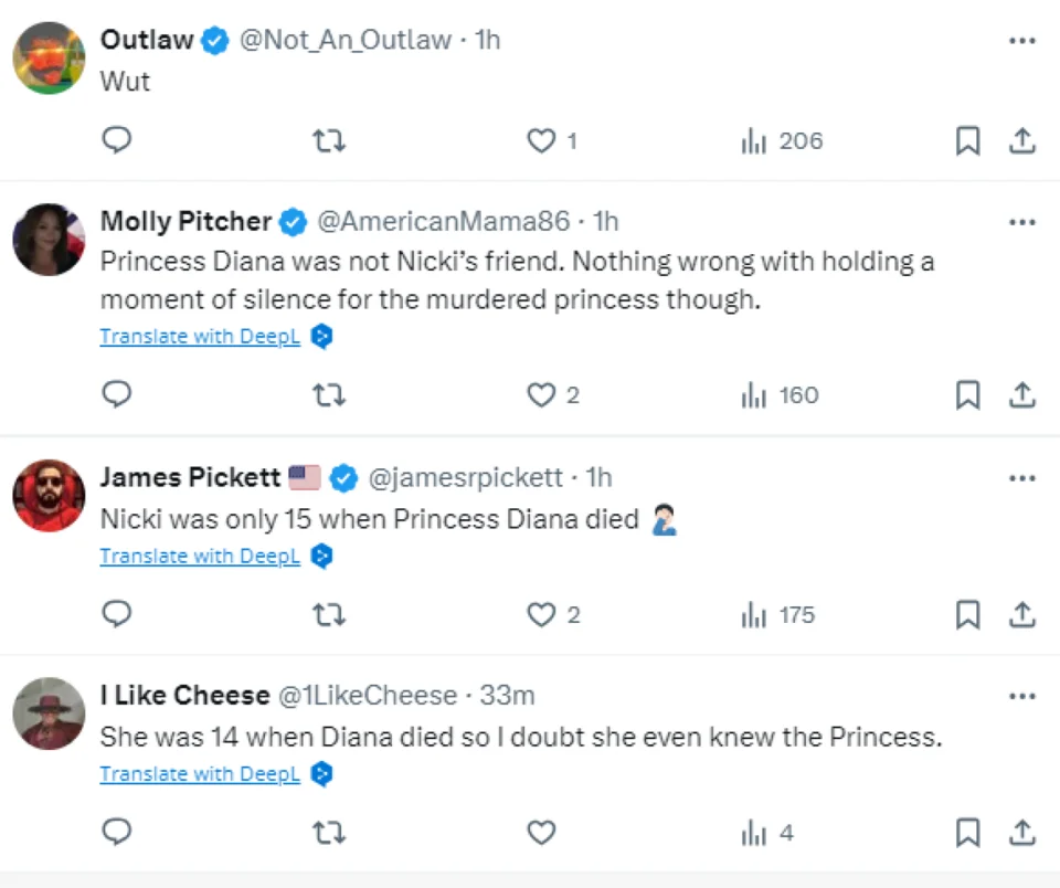Η τραγουδίστρια Nicki Minaj πραγματοποίησε συναυλία στο Μπέρμιγχαμ της Αγγλίας και έκανε μια… περίεργη αφιέρωση στην πριγκίπισσα Νταϊάνα. Η 41χρονη τραγουδίστρια ρώτησε το κοινό ενώ ήταν πάνω στη σκηνή: «Από πού κατάγεστε;», για να απαντήσει κάποιος: «Από την Ουαλία». Στη συνέχεια, με βρετανική προφορά μίλησε για την πριγκίπισσα Νταϊάνα στο πλήθος, αποκαλώντας την… «καλή της φίλη». «Ουαλία ε; Μου θυμίζει πάντα μια καλή μου φίλη, που δεν είναι πια εδώ. Η Πριγκίπισσα της Ουαλίας. Ας τηρήσουμε ένα λεπτό σιγής για αυτή», είπε χαρακτηριστικά, αφήνοντας το πλήθος «παγωτό». Η πριγκίπισσα Νταϊάνα έφυγε από τη ζωή σε ηλικία 36 ετών, το 1997, όταν η Nicki Minaj ήταν μόλις 14 ετών. Στο Twitter έγινε χαμός μετά τη δήλωσή της. «Μια αγαπημένη μου φίλη… Ήταν 14 όταν πέθανε η Νταϊάνα…», έγραψε κάποιος.
