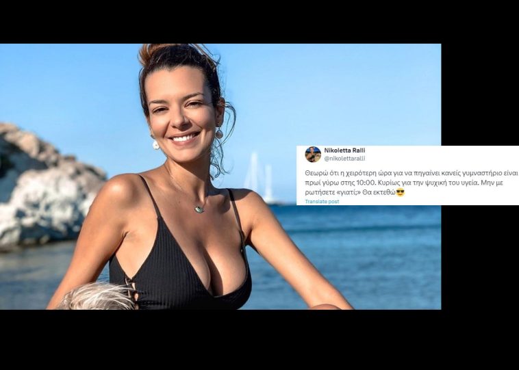 Μας βάζει σε σκέψεις η Νικολέττα Ράλλη με την τελευταία ανάρτησή της «Θεωρώ ότι η χειρότερη ώρα για να πηγαίνει κανείς γυμναστήριο είναι το πρωί γύρω στης 10:00.