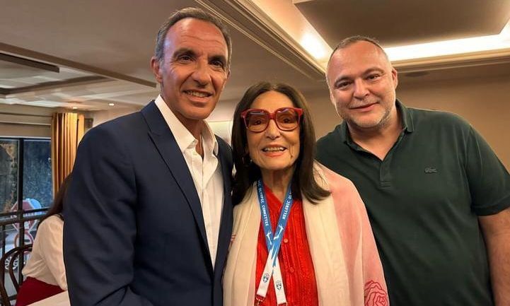 Στο κατάμεστο από κόσμο Παναθηναϊκό Στάδιο πραγματοποιήθηκε το απόγευμα της Παρασκευής 26 Απριλίου η τελετή παράδοσης της Ολυμπιακής Φλόγας. Η Νάνα Μούσχουρη απήγγειλε τόσο τον εθνικό ύμνο της Γαλλίας όσο και τον ελληνικό, ενώ παρουσιαστής της εκδήλωσης ήταν ο Νίκος Αλιάγας Η Ολυμπιακή φλόγα μετά από 11 ημέρες επί ελληνικού εδάφους πήρε τον δρόμο της για το Παρίσι. Η καταξιωμένη ερμηνεύτρια ερμήνευσε τους Εθνικούς Ύμνους της Ελλάδας και της Γαλλίας συνοδεία της Εθνικής Συμφωνικής Ορχήστρας και Χορωδίας της ΕΡΤ. Την Καλλιτεχνική Διεύθυνση Χορωδίας είχε αναλάβει η Μαρίνα Σάττι, ενώ τη Μουσική Διεύθυνση ο Μιχάλης Οικονόμου. Μετά την παράδοση της φλόγας, ο παρουσιαστής και η Νάνα Μούσχουρη πόζαραν αγκαλιασμένοι στον φακό της κάμερας. Ο Nίκος Αλιάγας ανέβασε μάλιστα το κοινό τους στιγμιότυπο στον λογαριασμό του στο Instagram και έγραψε: «Mon amie [σ.σ. η φίλη μου]».