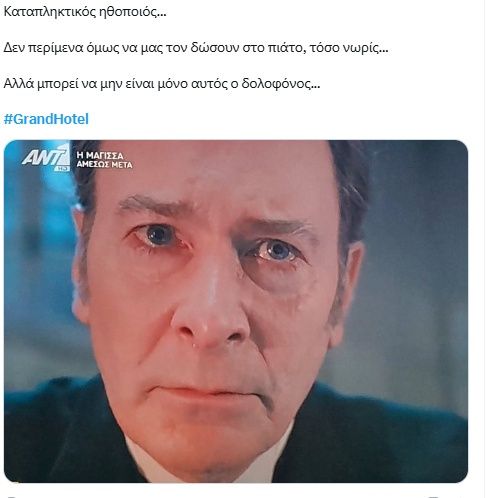 Είναι από τους ήρωες της σειράς Grand Hotel που λατρεύουμε να μισούμε και στο τελευταίο επεισόδιο (12/11) κατάφερε, όχι μόνο να προκαλέσει το ενδιαφέρον των τηλεθεατών αλλά και να τους κάνει να τον αποθεώσουν.
