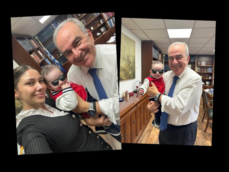 «Και κάπως έτσι η Δευτέρα μου έγινε πιο φωτεινή! Την πιο ευχάριστη και απρόσμενη έκπληξη μου επιφύλασσε η κόρη μου η Ευσταθία η οποία με επισκέφθηκε σήμερα στο γραφείο με τον μικρό μου εγγονό. Μετά από αυτό το ευχάριστο διάλειμμα, πίσω στη δουλειά» γράφει.