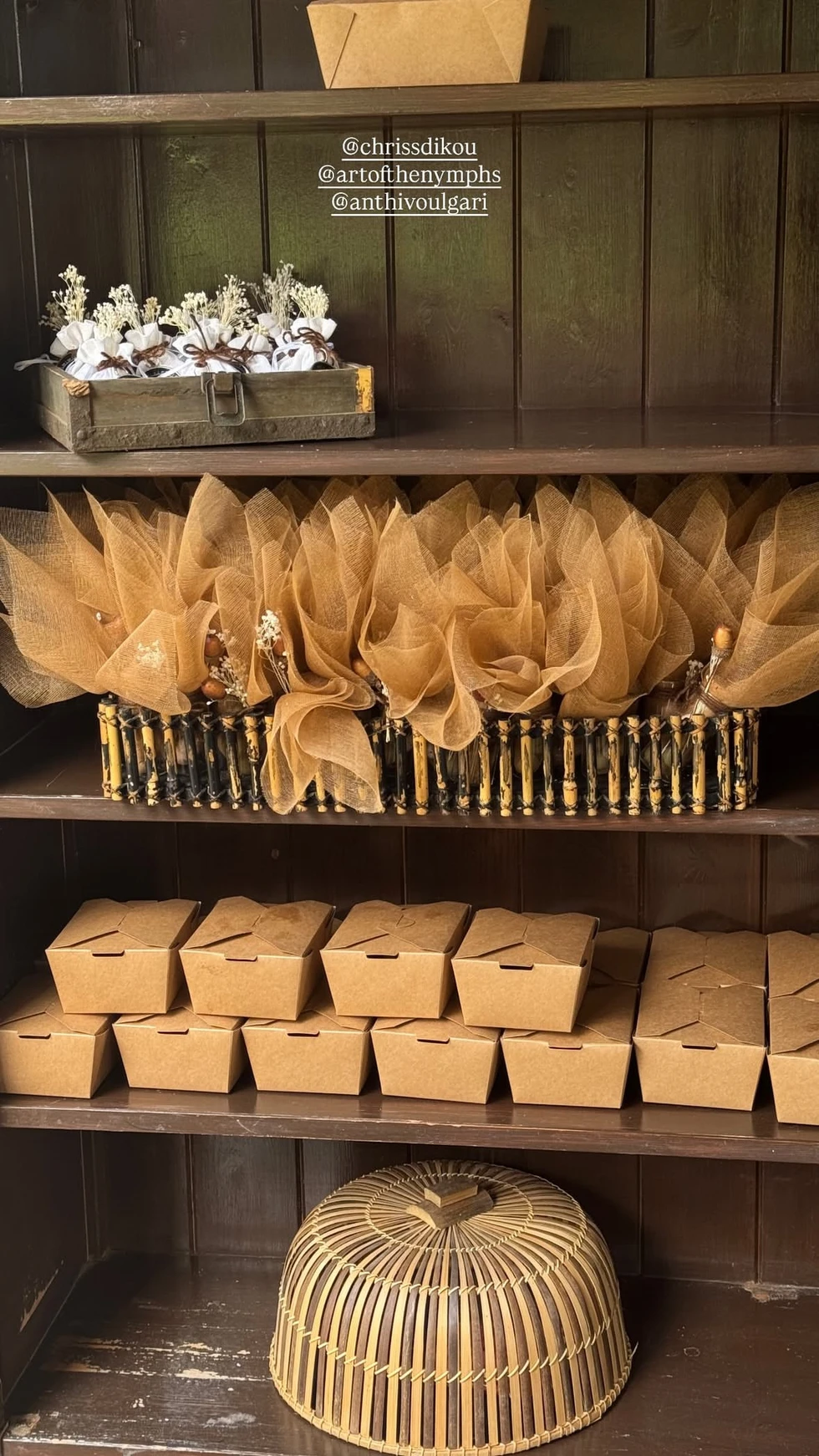 Ο νεοφώτιστος πήρε το όνομα Εύανδρος και η μπομπονιέρα της βάφτισής του ήταν σε μπεζ και καφέ αποχρώσεις.