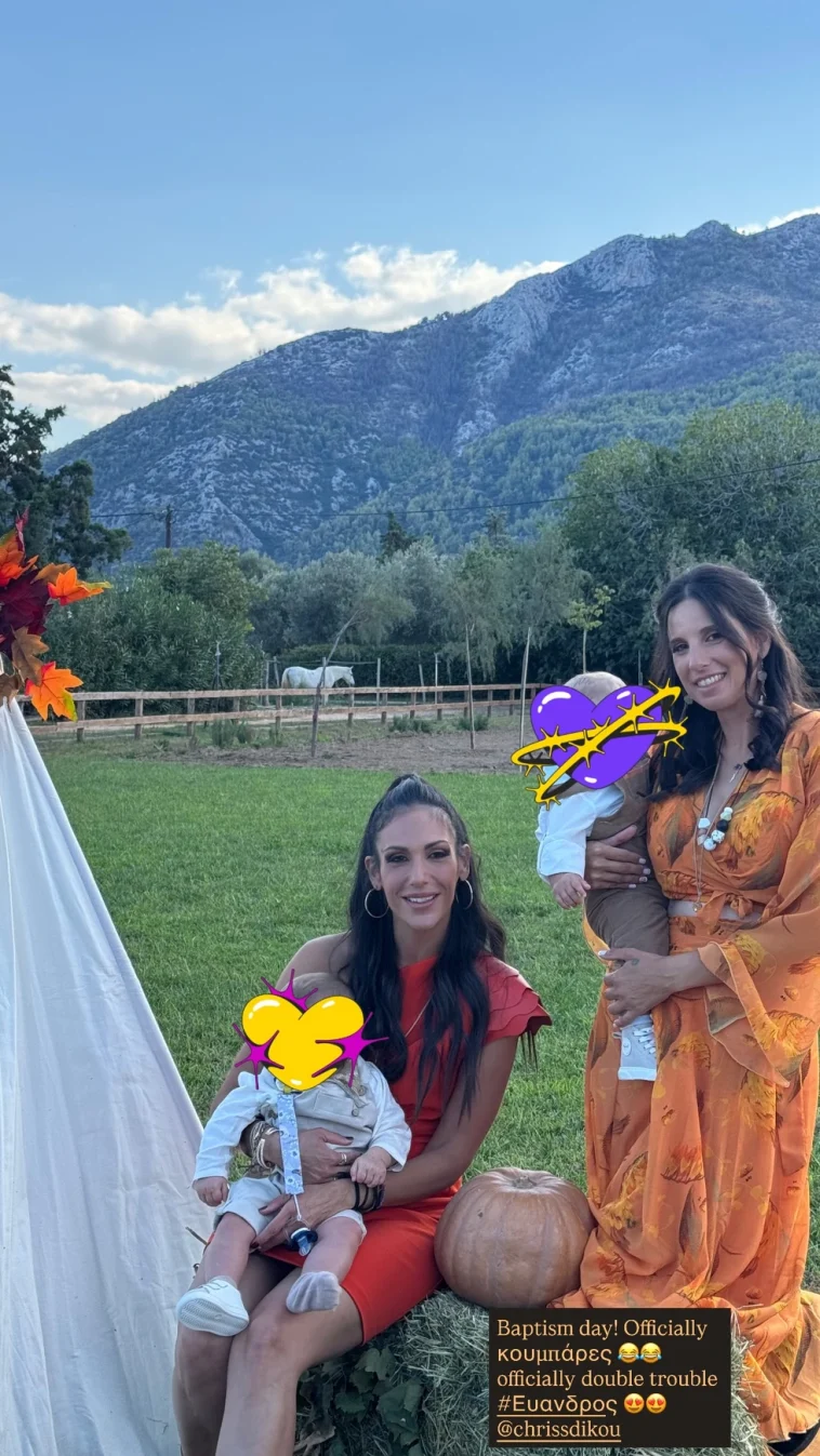 Ο στολισμός της βάφτισης, αλλά και τα ρούχα μαμάς και νονάς ήταν σε γήινα και φθινοπωρινά χρώματα. Συγκεκριμένα, η μητέρα του μικρού επέλεξε ένα deux pieces πορτοκαλί αέρινο σύνολο με print φθινοπωρινά φύλλα, ενώ η νονά ένα μίνι off one shoulder φόρεμα με ιδιαίτερο μανίκι σε βαθύ πορτοκαλί χρώμα.