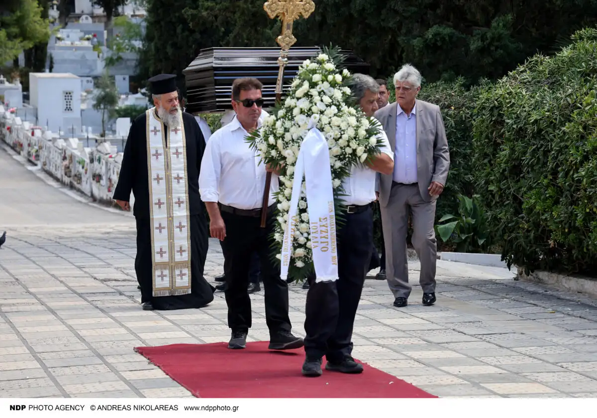 Στην εξόδιο ακολουθία, η κόρη του, Σμαράγδα Καρύδη, μοιάζει απαρηγόρητη, ενώ συγκινημένος ο σύντροφός της, Θοδωρής Αθερίδης, βρίσκεται δίπλα της και προσπαθεί να της δώσει κουράγιο.
