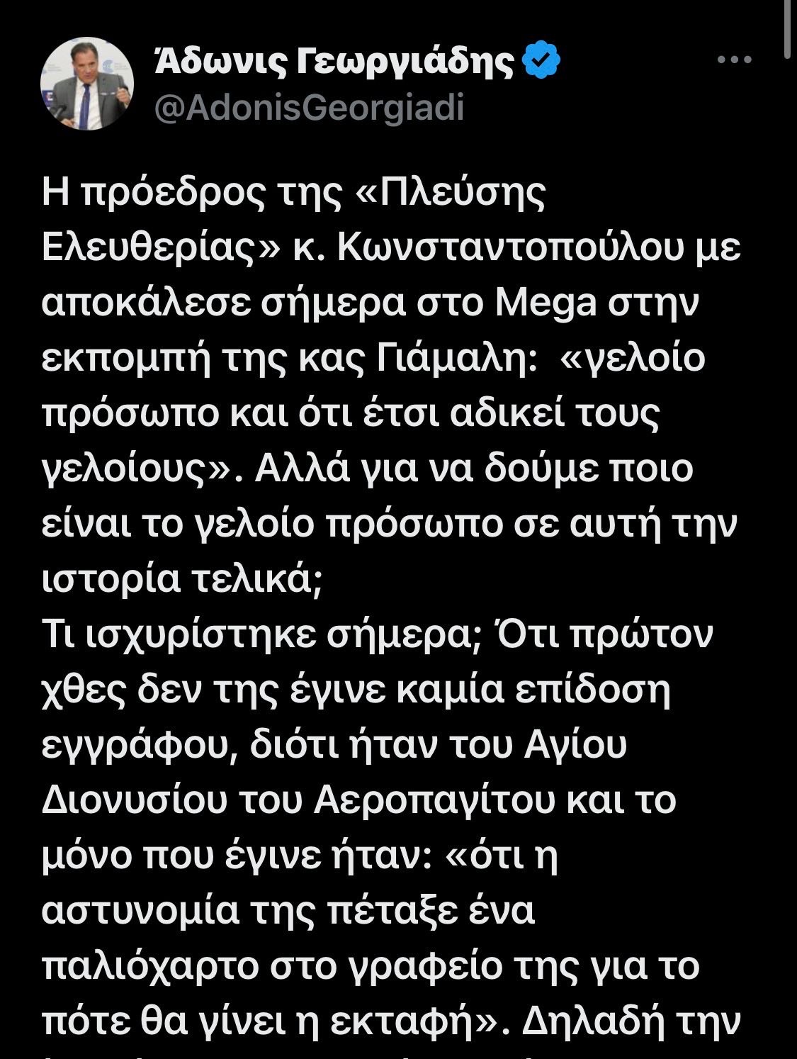 Απάντηση σε όσα είπε η Ζωή Κωνσταντοπουλου στην εκπομπή της Γιάμαλη στο Mega έδωσε πριν από λίγο ο Άδωνις Γεωργιάδης . Ο υπουργός υγείας έγραψε: