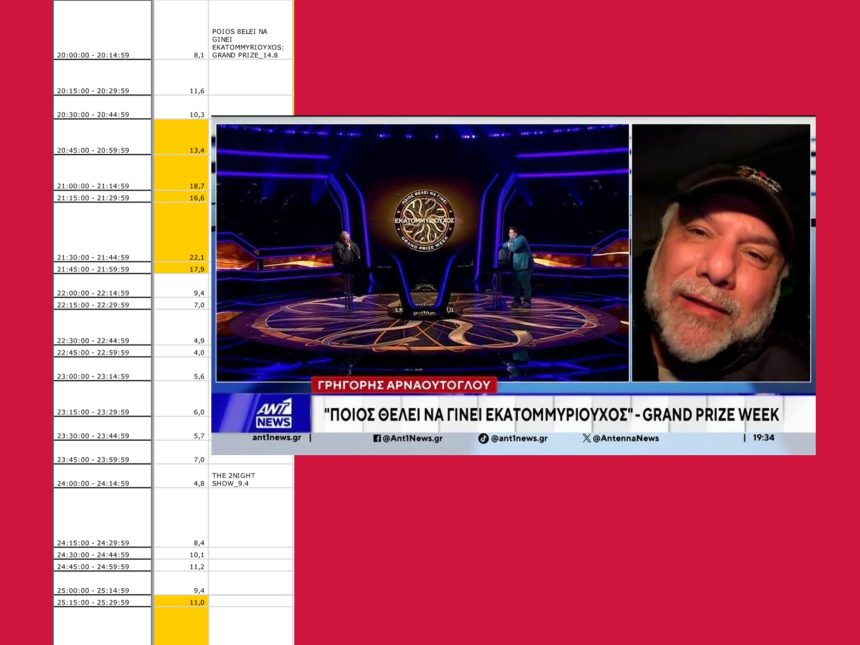 Η αρχή έγινε με το δημοφιλές τηλεπαιχνίδι “Ποιος Θέλει Να Γίνει Εκατομμυριούχος”, το οποίο σημείωσε ιδιαίτερα υψηλές επιδόσεις φτάνοντας μέχρι και 22,1%, επιβεβαιώνοντας τη σταθερή σχέση που έχει δημιουργήσει με το κοινό. Το παιχνίδι συνεχίζει να αποτελεί ένα από τα πιο αξιόπιστα προγράμματα της ζώνης, με τον Γρηγόρη να δίνει τον γνώριμο ρυθμό, το χιούμορ και την άνεση που το κάνουν να ξεχωρίζει.