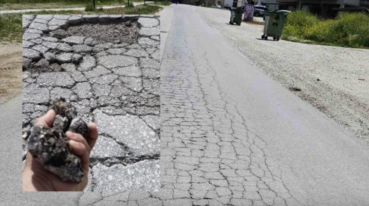 Ένας δρόμος που πρέπει να ανακατασκευαστεί εξολοκλήρου, καθώς η εικόνα που παρουσιάζει είναι τουλάχιστον επικίνδυνη.