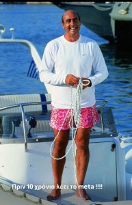 Ο Βουλγαράκης μας δείχνει πως ήταν πριν από 10 χρόνια στις διακοπές του. Χαρούμενος και χαμογελαστός με ροζ μαγιουδάκι, ποζάρει πάνω σε ταχύπλοο και παράλληλα ποζάρει για την γυναίκα του.