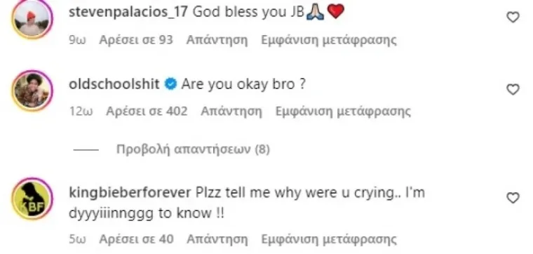 Η τελευταία ανάρτηση του Justin Bieber στο Instagram έφερε ανησυχία στους θαυμαστές του καθώς η εύθραυστη εικόνα του προκάλεσε πολλά ερωτηματικά. Ο Justin επέστρεψε στο Instagram και όπως θα δείτε και παρακάτω, είχε κάποιες συναισθηματικές διακυμάνσεις. Εκτός από τις υπέροχες εικόνες που ανέβασε από τις τελευταίες του εμφανίσεις, είδαμε τα μάτια του τραγουδιστή να είναι γεμάτα με δάκρυα. Στις φωτογραφίες τον βλέπουμε στη σκηνή να δίνει τον καλύτερο του εαυτό ή να κάνει χαλαρά γκολφ και να εκμεταλλεύεται στο έπακρο την ηρεμία στην παραλία. Ωστόσο, οι θαυμαστές δεν μπορούσαν να αγνοήσουν τις δύο φωτογραφίες στις οποίες κλαίει με αρκετούς να αναφέρονται ακόμη και στις πιθανές επιπτώσεις που είχε η έκθεση του στη showbiz σε νεαρή ηλικία. Οι ανήσυχοι θαυμαστές συσχέτισαν την κακή του διάθεσή στις φωτογραφίες με σχόλια τύπου: «φωνάζοντας βοήθεια».