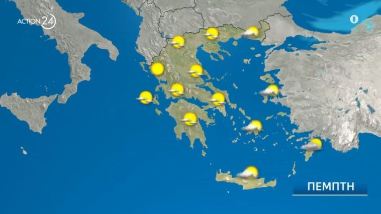 Η θερμοκρασία θα σημειώσει μικρή άνοδο και θα φτάσει τους 21 βαθμούς στα κεντρικά και βόρεια και τους 22 με 23 στα νότια ηπειρωτικά και νησιωτικά τμήματα.