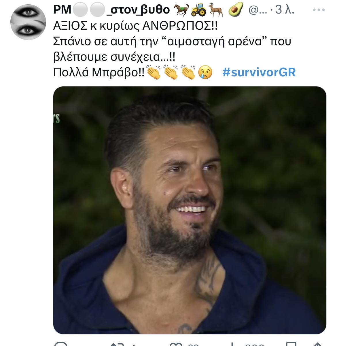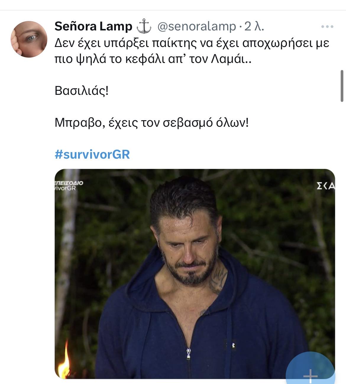 Έφυγε με το κεφάλι ψηλά με το Twitter να τον αποθεώνει και να τον αποκαλεί βασιλιά. « Είσαι μοναδικός, μας συγκίνησες, σε σεβόμαστε» , « Είσαι βασιλιάς. Respect. Υπάρχουν κάποιοι που δεν τα κάνουν όλα για τα χρήματα. Μπράβο σου» Και πολλά άλλα παρόμοια σχολια.