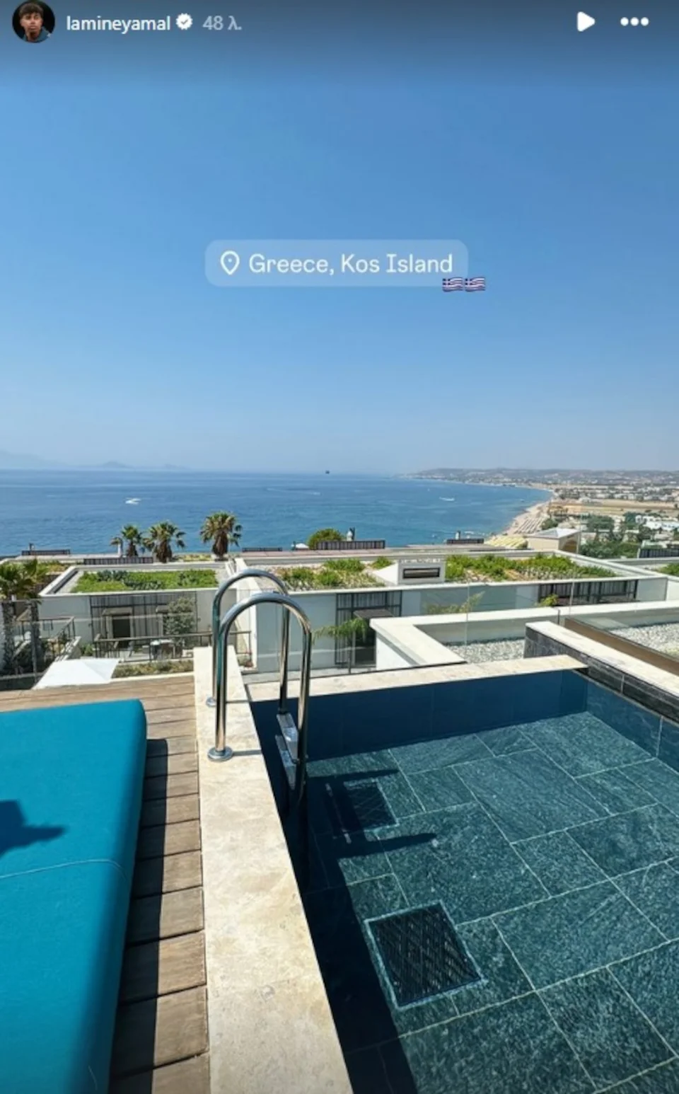 Πέντε ημέρες μετά την κατάκτηση του Euro2024 με την εθνική Ισπανίας, ο νεαρός σουπερστάρ Λαμίν Γιαμάλ επέλεξε τη χώρα μας για τις διακοπές του. Ο 17χρονος παίκτης, πριν ξεκινήσει την προετοιμασία του με την Μπαρτσελόνα, ταξίδεψε στη χώρα μας και συγκεκριμένα στην Κω, προκειμένου να χαλαρώσει. Ο Γιαμάλ, που αναδείχθηκε καλύτερος νέος ποδοσφαιριστής του Euro2024, δημοσίευσε story από τον πολυτελή χώρο διαμονής του, βάζοντας ως τοποθεσία το νησί της Κω. Ο Λαμίν Γιαμάλ έγινε ο νεότερος που κερδίζει το Euro και ο νεότερος που παίζει και βάζει γκολ σε τελική φάση.