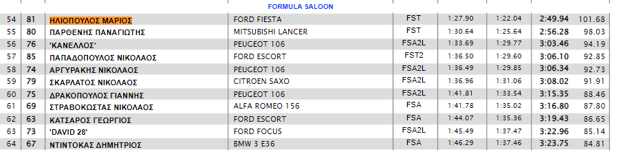 Έσπασε το φράγμα του “2:50”, ο Mario με Ford Fiesta σημείωσε 2:49:94 και έχει πετύχει τον καλύτερο χρόνο του σκέλους, καθώς και της κατηγορίας Formula Saloon όπως και της κλάσης FST.