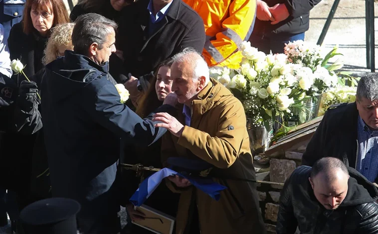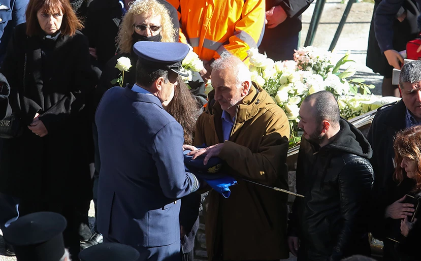 Επίσης, στο τελευταίο «αντίο» πάνω από το μνήμα του άτυχου πιλότου, ο Κυριάκος Μητσοτάκης σε μια κίνηση παρηγοριάς άγγιξε στον ώμο τον πατέρα του σμηναγού, ο οποίος κηδεύτηκε με τον βαθμό του αντιπτεράρχου.