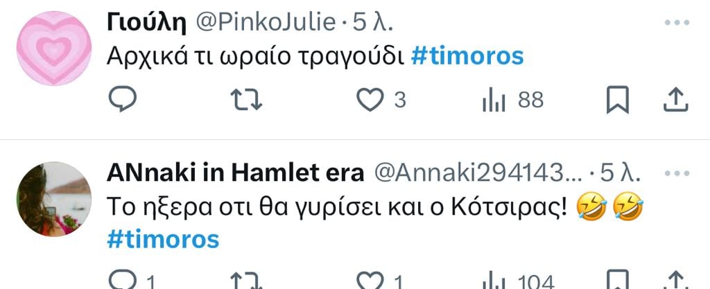 Πρεμιέρα είχε και ο “Τιμωρός” χθες με πρωταγωνιστή τον Δημήτρη Λάλο. Από τα πρώτα κιόλας δευτερόλεπτα, το τουίτερ πήρε φωτιά καθώς το τραγούδι των τίτλων που υπογράφει το δίδυμο του “Σασμού”, ο Νίκος Τερζής καιο Γιάννης Κότσιρας, τους ξετρέλανε! Ο τίτλος του « Τι Σκέφτεσαι»