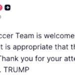 Ο Αμερικανός πρόεδρος Ντόναλντ Τραμπ δήλωσε ότι η εθνική ομάδα ποδοσφαίρου του Ιράν είναι ευπρόσδεκτη στις ΗΠΑ για το Μουντιάλ αυτό το καλοκαίρι, ωστόσο πρόσθεσε σε ανάρτησή του: «Πραγματικά δεν πιστεύω ότι είναι σωστό να βρίσκονται εκεί, για τη δική τους ζωή και ασφάλεια».