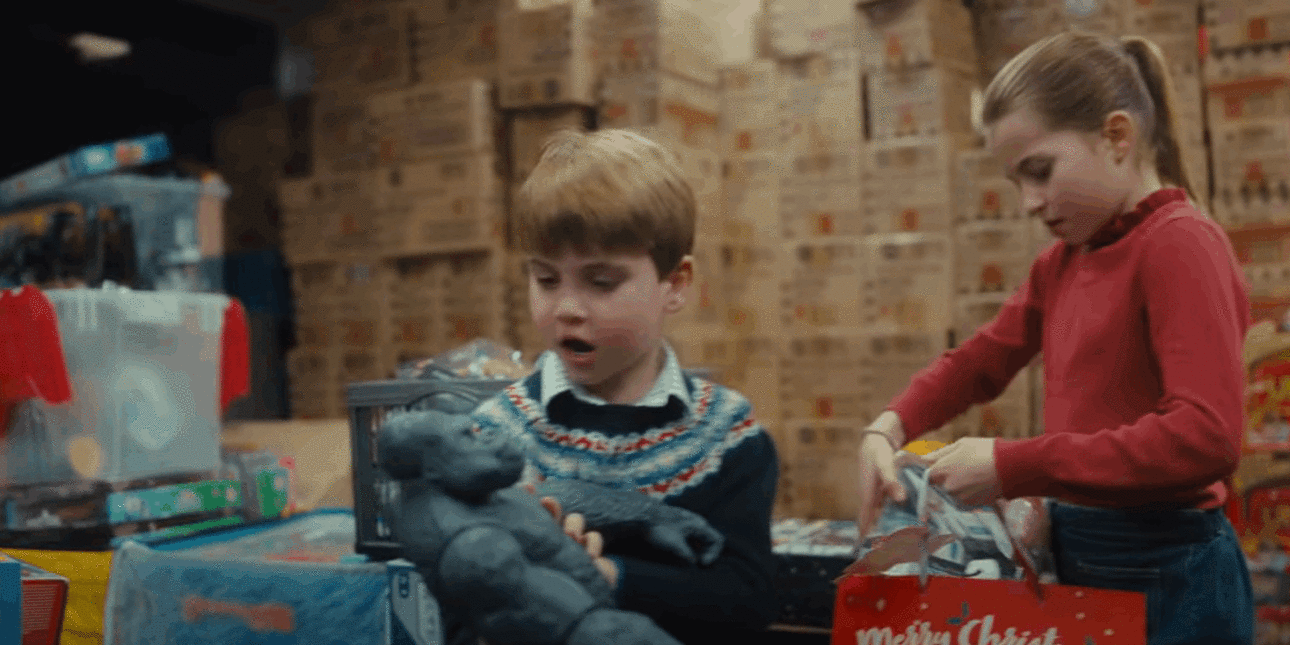 - H Κέιτ Μίντλετον ακούγεται να λέει στα παιδιά της: «Εδώ υπάρχουν πολλοί άνθρωποι που αφιερώνουν το χρόνο τους και πολλοί εθελοντές που έρχονται και βοηθούν. Και έτσι, εσείς είστε οι εθελοντές γι’ αυτή τη βραδιά».Ακολούθως τα τρία παιδιά μπαίνουν στην Τράπεζα Βρεφών με την πριγκίπισσα Σάρλοτ να μην μπορεί να κρύψει τον ενθουσιασμό της. «Oh la la» ακούγεται να λέει καθώς μπαίνει στην αίθουσα και βλέπει μπροστά της όλα αυτά τα παιχνίδια. «Για να δούμε» λέει ο πρίγκιπας Λούις με ανυπομονησία, κρυφοκοιτάζοντας μέσα στις σακούλες με τις δωρεές ενώ ο πρίγκιπας Τζορτζ είναι πιο σοβαρός.