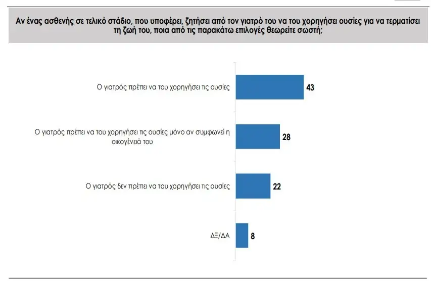 Ενδιαφέροντα και άκρως αποκαλυπτικά είναι τα αποτελέσματα της πανελλαδικής έρευνας κοινής γνώμης, η οποία μεταξύ άλλων ασχολήθηκε και με την ευθανασία.