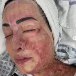 - Η Ιωάννα μας δείχνει το δέρμα κατά τη διάρκεια της θεραπεία που είναι κόκκινο και γράφει
