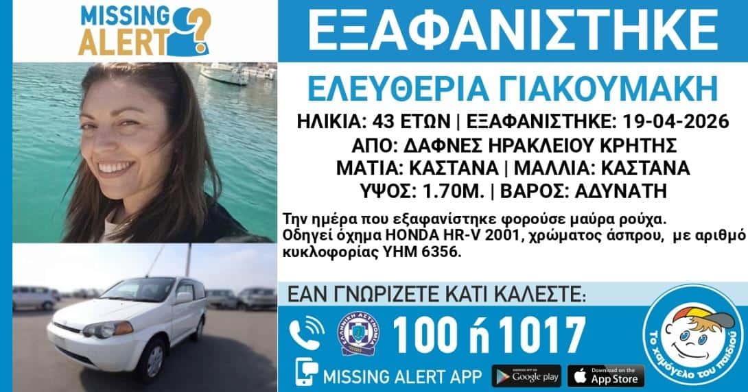 Όλο η Κρήτη την ψάχνει – Συναγερμός για την εξαφάνιση της Ελευθερίας Γιακουμάκη