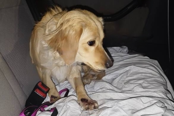 Η μικρή σκυλίτσα, η οποία εκτιμάται ότι είναι περίπου 10 μηνών φέρει τραύματα στα πόδια αλλά και στο πιγούνι.