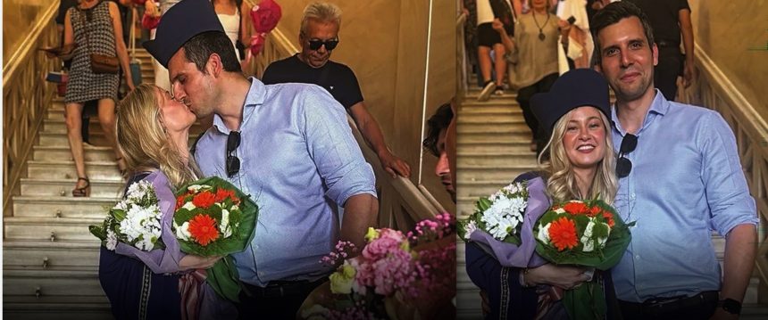 Κουμπάροι του ζευγαριού θα είναι δύο αγαπημένοι φίλοι του, ένας από το περιβάλλον του γαμπρού και ένας από το περιβάλλον της νύφης, ενώ θα ακολουθήσει δεξίωση σε παραθαλάσσιο κτήμα της Αττικής. Και κάπως έτσι, από τα 30.000 πόδια… φτάνουν τώρα στα σκαλιά της εκκλησίας. Με όλα τα φώτα πάνω τους.