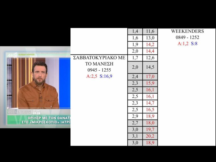 Όχι μόνο παγιώνεται η τεράστια απόκλιση αλλά αυξάνει κάθε εβδομάδα. Και μη μου πείτε πώς το νεανικό του παραμένει σταθερό γιατί θα γελάσω δυνατά. Μιας και οι μυημένοι γνωρίζουν καλά πώς ο δυναμικό κοινό τα Σαββατοκύριακα ειδικά … αθροιστικά ξεπερνά με το ζόρι τις 100.000 τηλεθεατές.