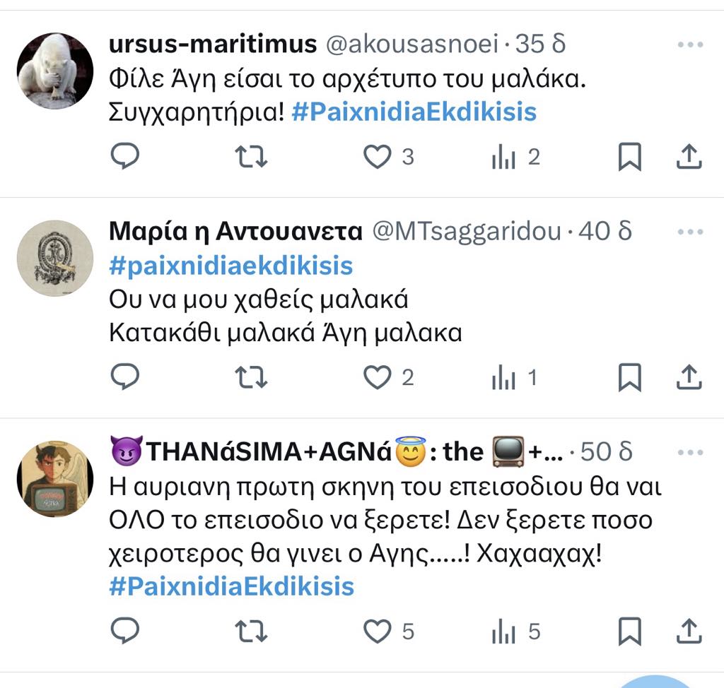 Και αυτό ήταν αρκετό για να σταυρώσουν τον Νίκο Κουρή, που υποδύεται τον Άγη και να του σείρουν όλα τα κοσμητικά. « Τι μαλ@κας που είναι» « Καθίκι, πόσο ξύλο θέλει ο σάπιος»