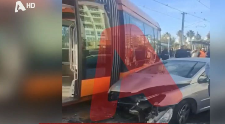 Το αυτοκίνητο “καρφώθηκε” στο τραμ που ήταν σε κίνηση και μάλιστα η σύγκρουση ήταν τόσο σφοδρή, που το τραμ εκτροχιάστηκε.