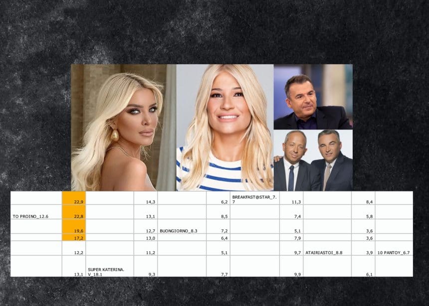 Απέναντι του η πρώτην του που παρά το “πούλημα” της σχέσης της κατέλαβε την τέτρτη θέση πίσω απο τον Σκάϊ που έπεσε πολύ και οριακά πάνω απο το Open.