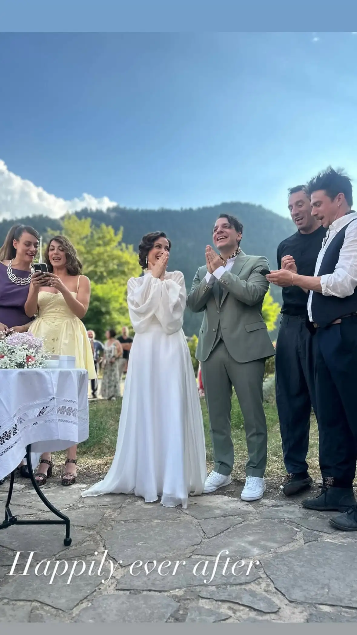 Το αγαπημένο ζευγάρι των ηθοποιών γιόρτασε την ιδιαίτερη μέρα του με φίλους και συναδέλφους από τον καλλιτεχνικό χώρο, σε μια ζεστή και συγκινητική τελετή, γεμάτη αγάπη, χαμόγελα και έντονες στιγμές, ενώ μάρτυρες στον γάμο ήταν οι Δημήτρης Κίτσος, Ειρήνη Φαναριώτη, Γιώργος Τριανταφυλλίδης και Μυρτώ Γκόνη.